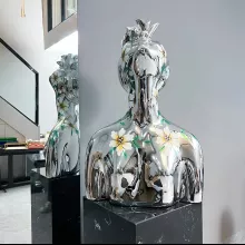 This painted portrait sculpture offers more than just a decorative piece. It brings personality and depth to any room with its abstract and modern design. The electroplated finish enhances its beauty, creating a metallic, shimmering effect that captures light from every angle. Perfect for those who appreciate art with meaning, this statue symbolizes elegance and creativity. Its unique and striking appearance is sure to be a conversation starter for guests and family alike.